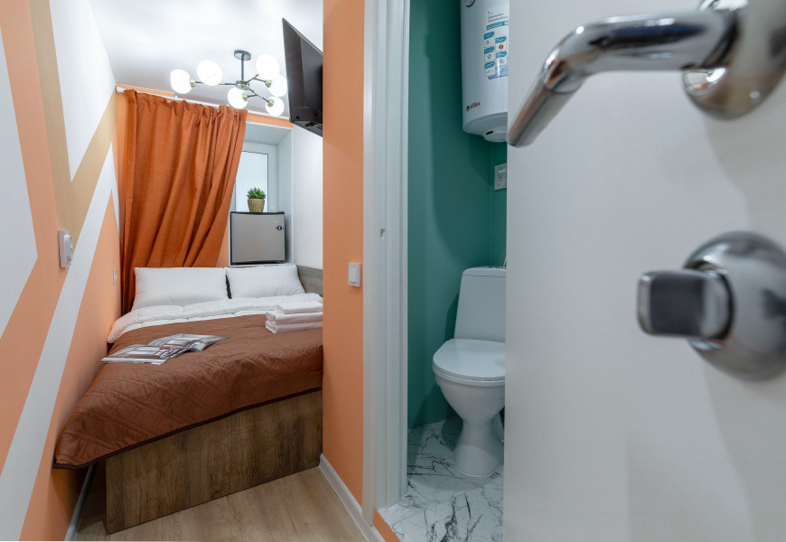 - Оборудование: гладильная доска, микроволновая печь, мини-холодильник, набор посуды, плита электрическая, стиральная машина, телевизор, утюг, электрочайник